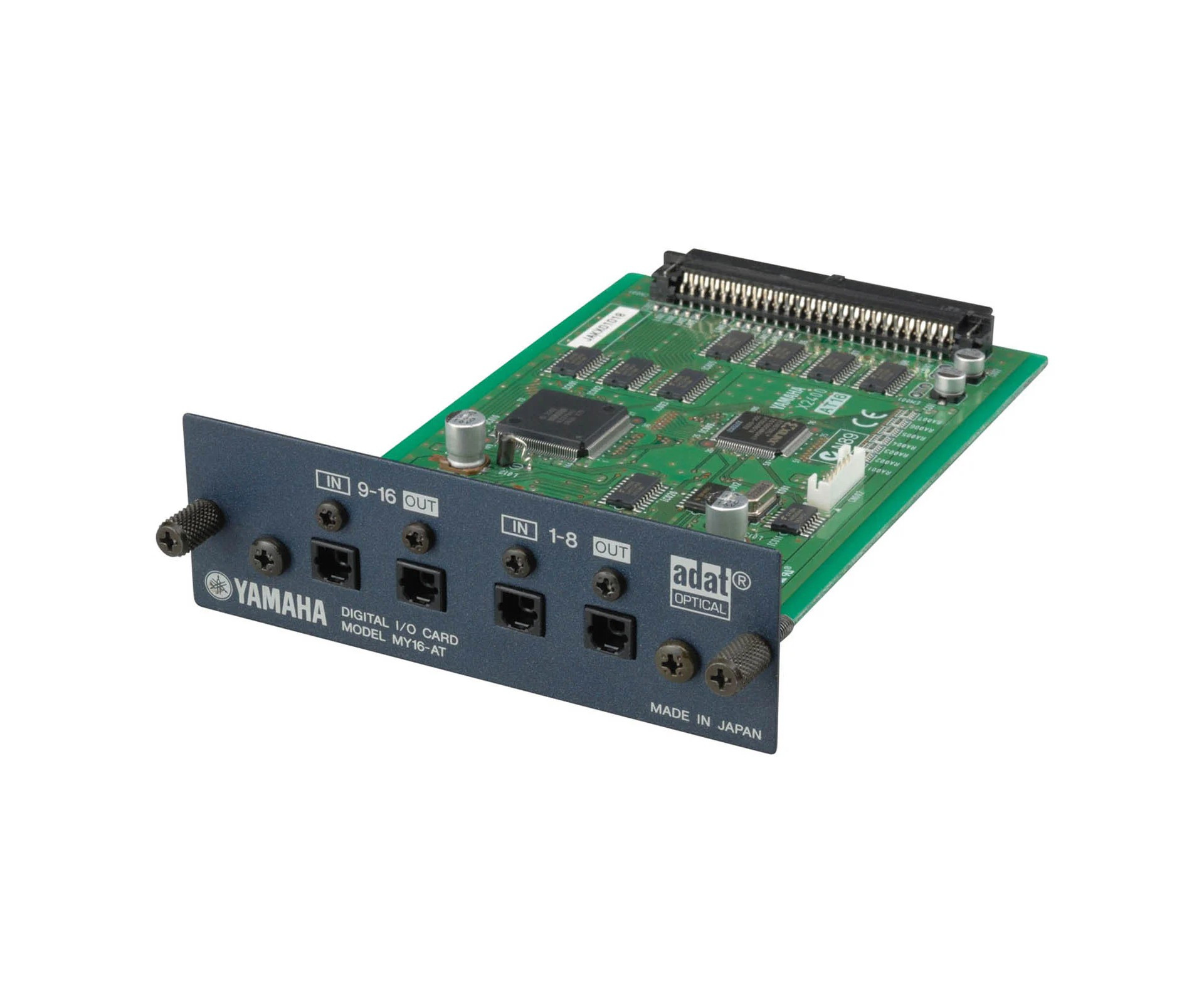 The Yamaha MY16-AT is a digital I/O card for compatible Yamaha digital mixing consoles and signal processors. It provide 16 inputs and 16 outputs for 24-bit, 44.1/48 kHz uncompressed ADATcompliant digital audio.