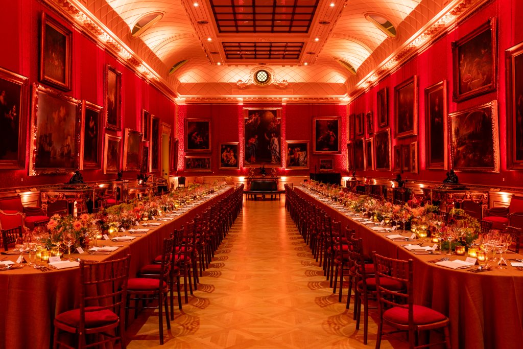An elegant evening among friends and supporters began with welcome drinks in the Drawing Room Suite, surrounded by treasured masterpieces, before moving into the magnificent Great Gallery for a seated dinner to remember, transformed for the evening with rich chestnut linens and seasonal autumnal florals.